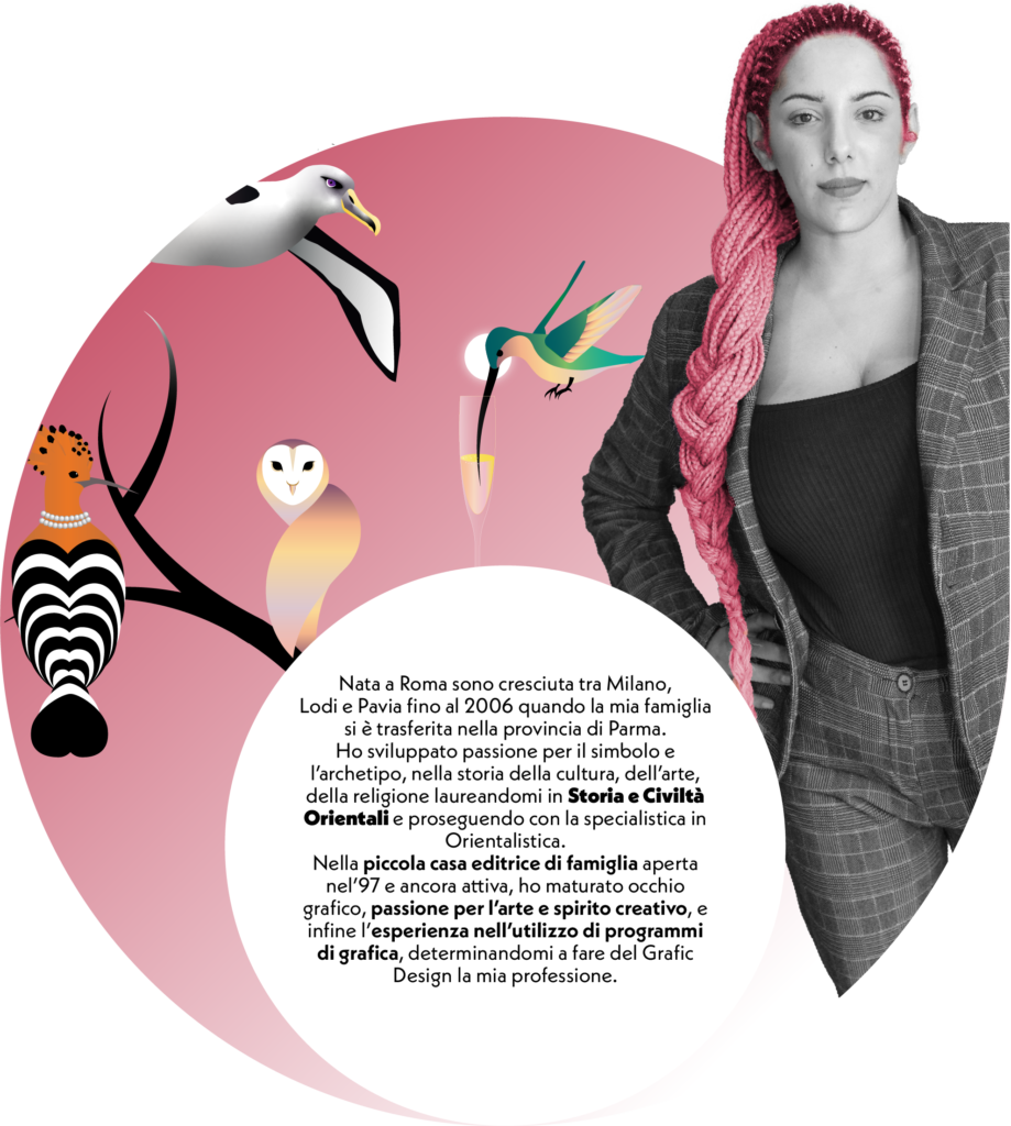 Nella piccola casa editrice di famiglia ho maturato occhio grafico, passione per l’arte e spirito creativo, e infine l’esperienza nell’utilizzo di programmi di grafica.