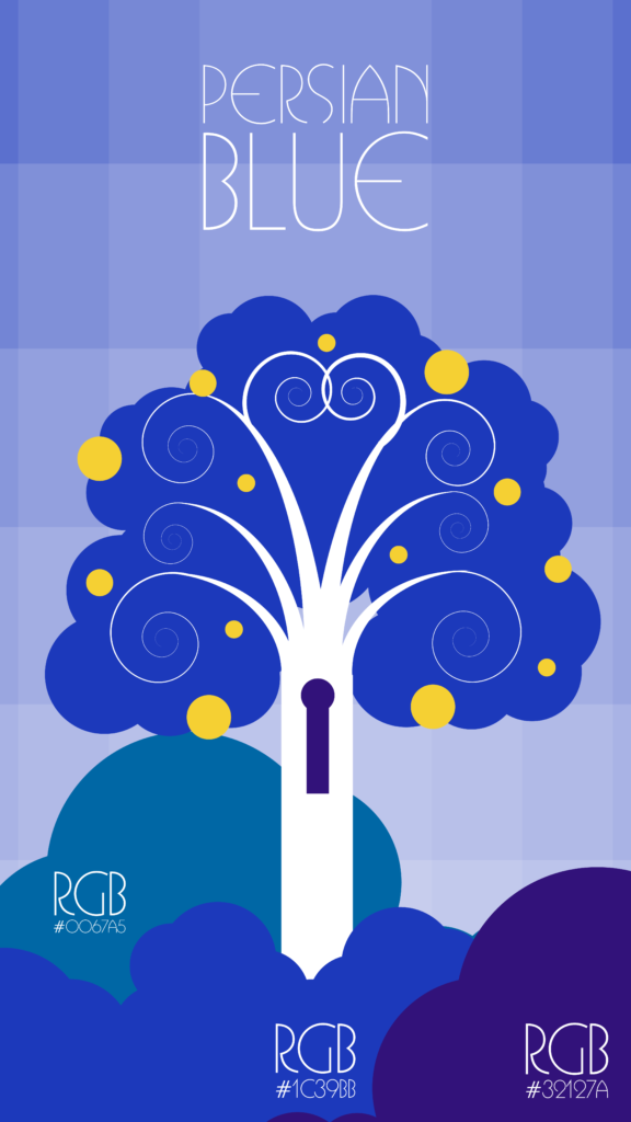 EN: The blue of Persian domes — a color that prays. It’s the hue of infinity, of order made sacred, where geometry turns to devotion. The tree form mirrors the symmetry of Persian gardens: where heaven and intellect meet.