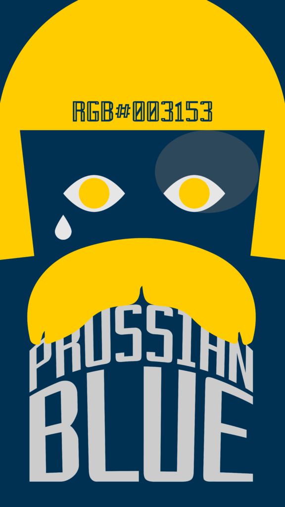 IT: Il colore della disciplina e della malinconia. Nato per errore in un laboratorio tedesco del XVIII secolo, divenne la base per l’inchiostro tecnico e militare. La figura severa e grottesca della tavola racconta il peso del dovere e la freddezza del controllo.