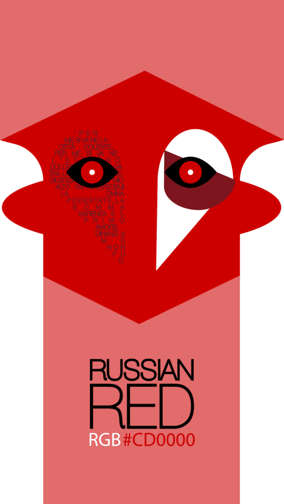 IT: Il Rosso dell’ideologia, del sangue e della passione. È il colore dell’ardore collettivo e del sacrificio: il fuoco che brucia per un’idea. Il volto doppio rappresenta la tensione tra individuo e massa, tra fede e paura.